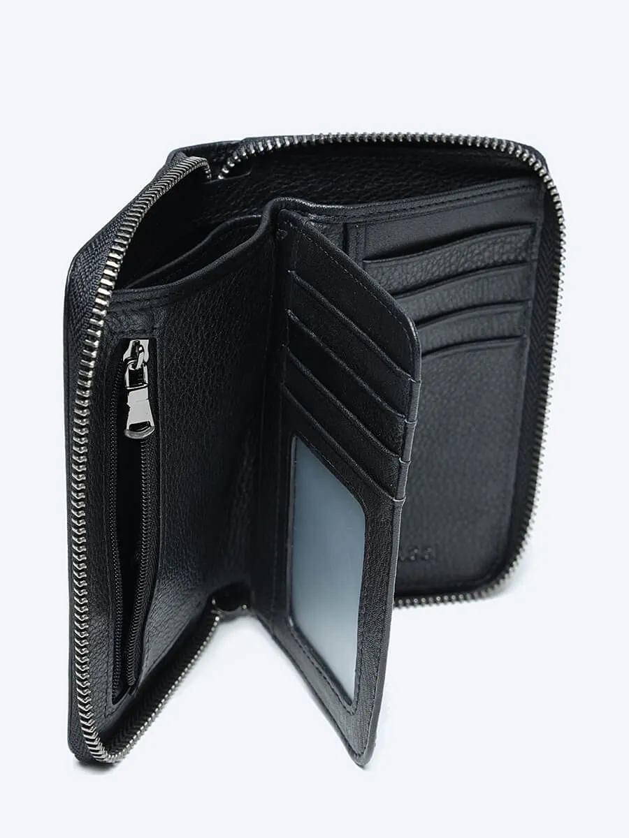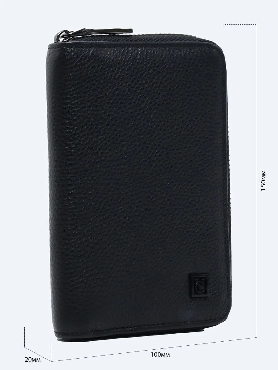 Мужской кошелек выполнен из натуральной кожи с зернистой фактурой. Оснащен множеством функциональных отделений.