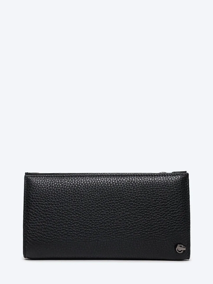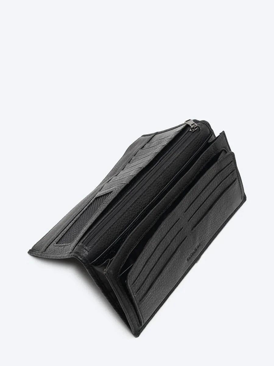 Портмоне выполнено из натуральной зернистой кожи. Оснащено множеством функциональных отделений.