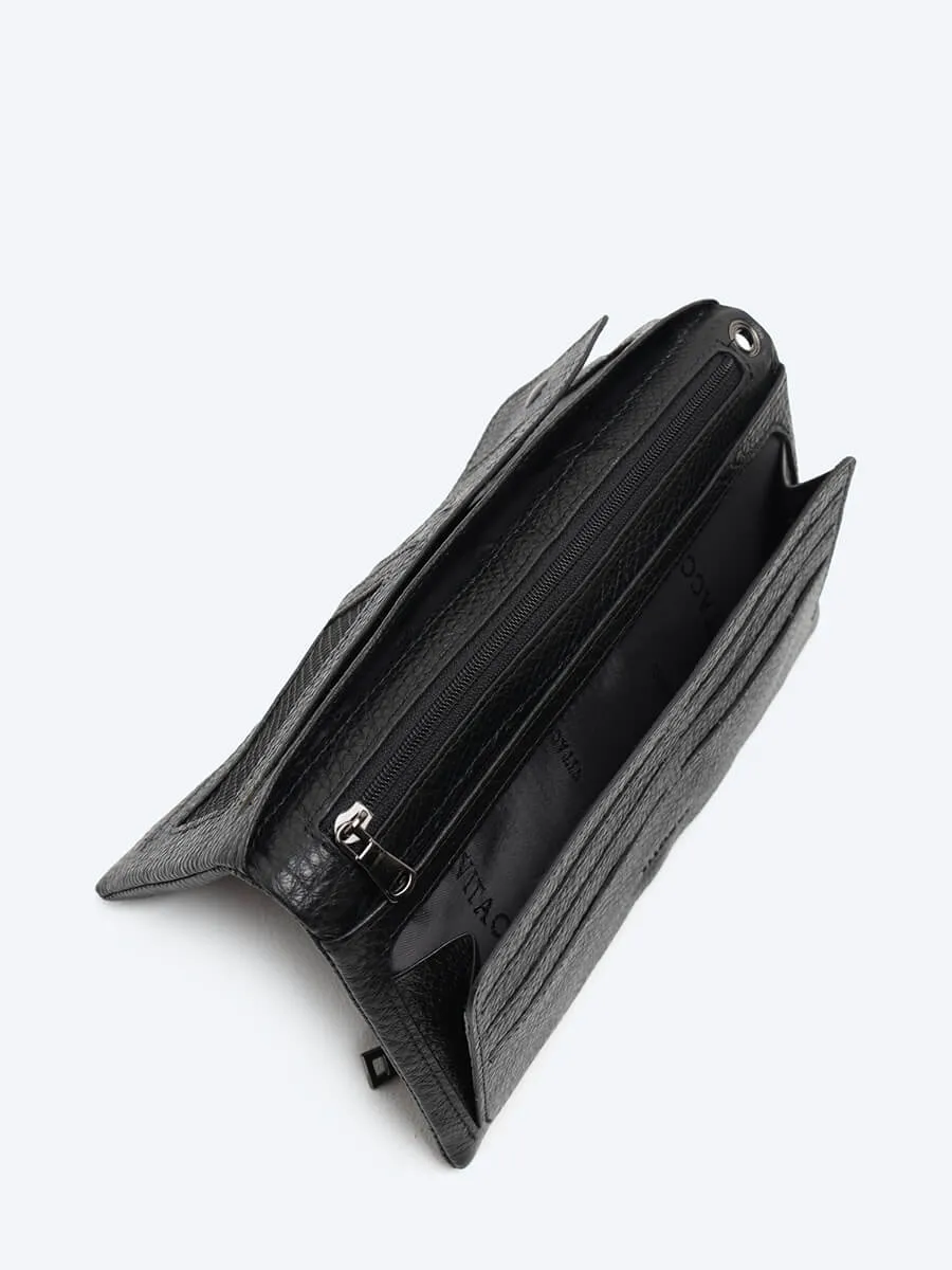 Портмоне выполнено из натуральной зернистой кожи. Оснащено множеством функциональных отделений.