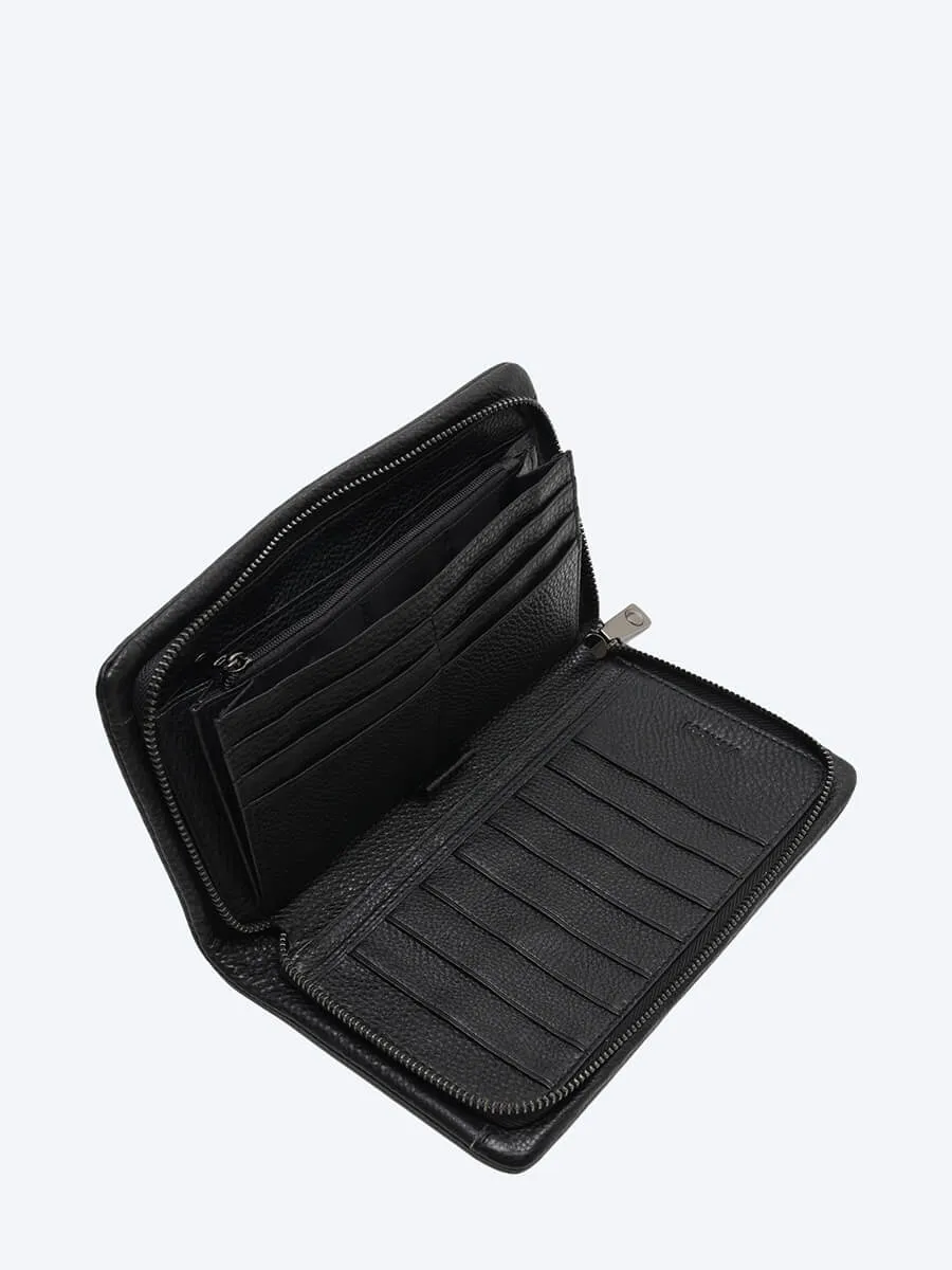 Портмоне выполнено из натуральной зернистой кожи. Оснащено множеством функциональных отделений.