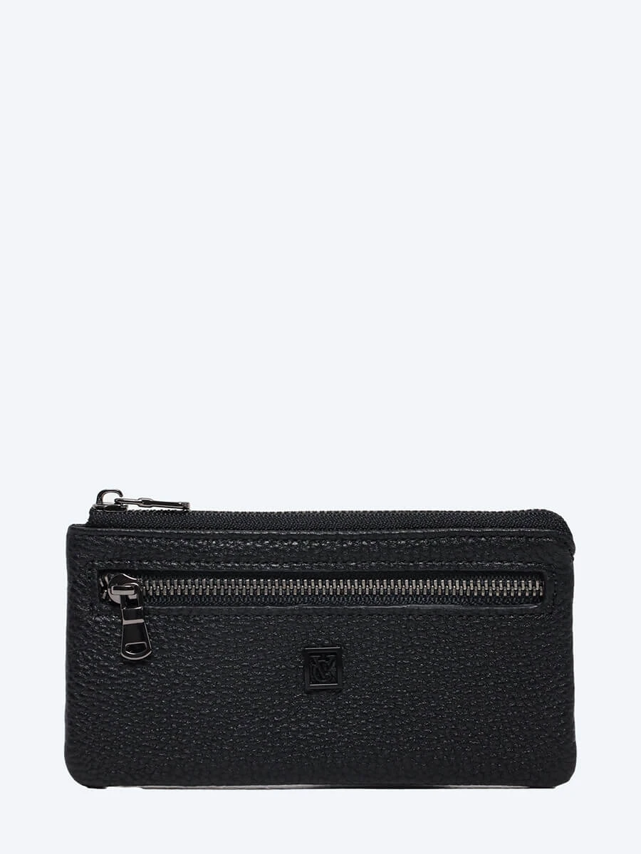 Ключница выполнена из натуральной кожи. Оснащена двумя отделениями на молнии и дополнительным кольцом для подвешивания ключей/брелоков.