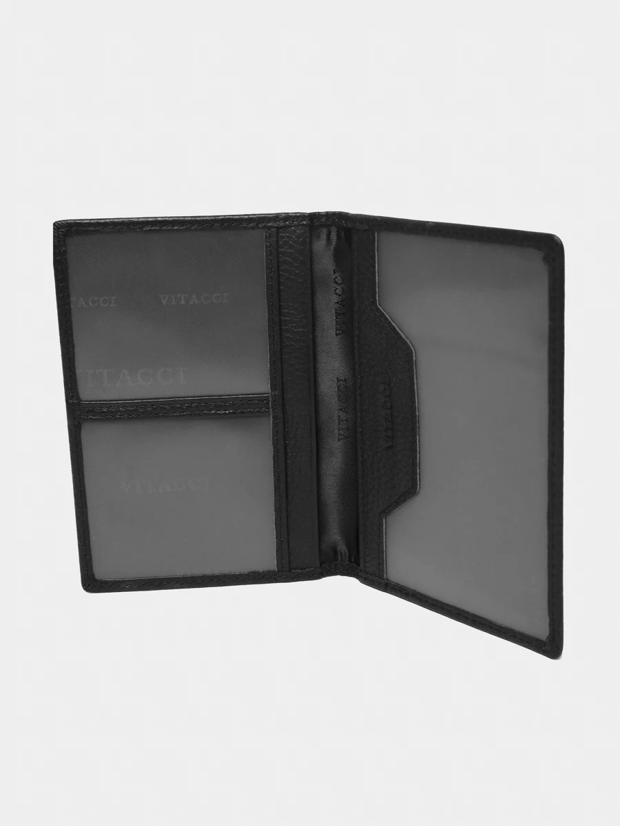 Обложка для паспорта из натуральной кожи. Содержит два дополнительных отделения для пластиковых карточек.