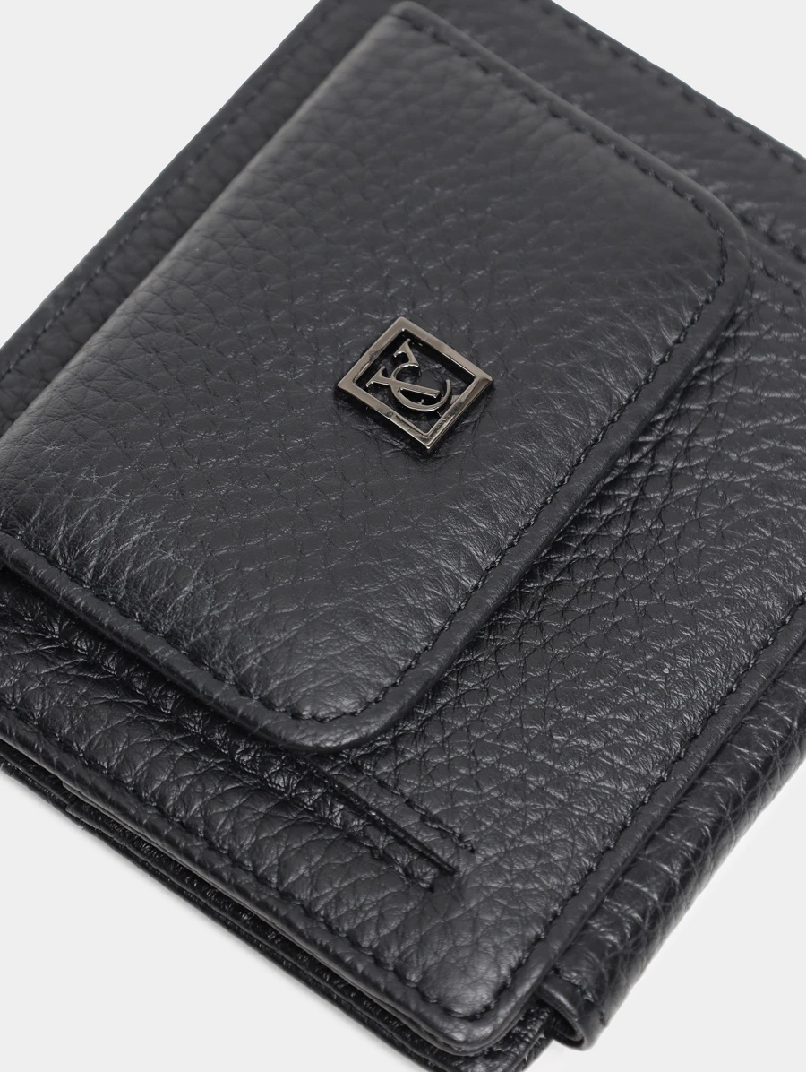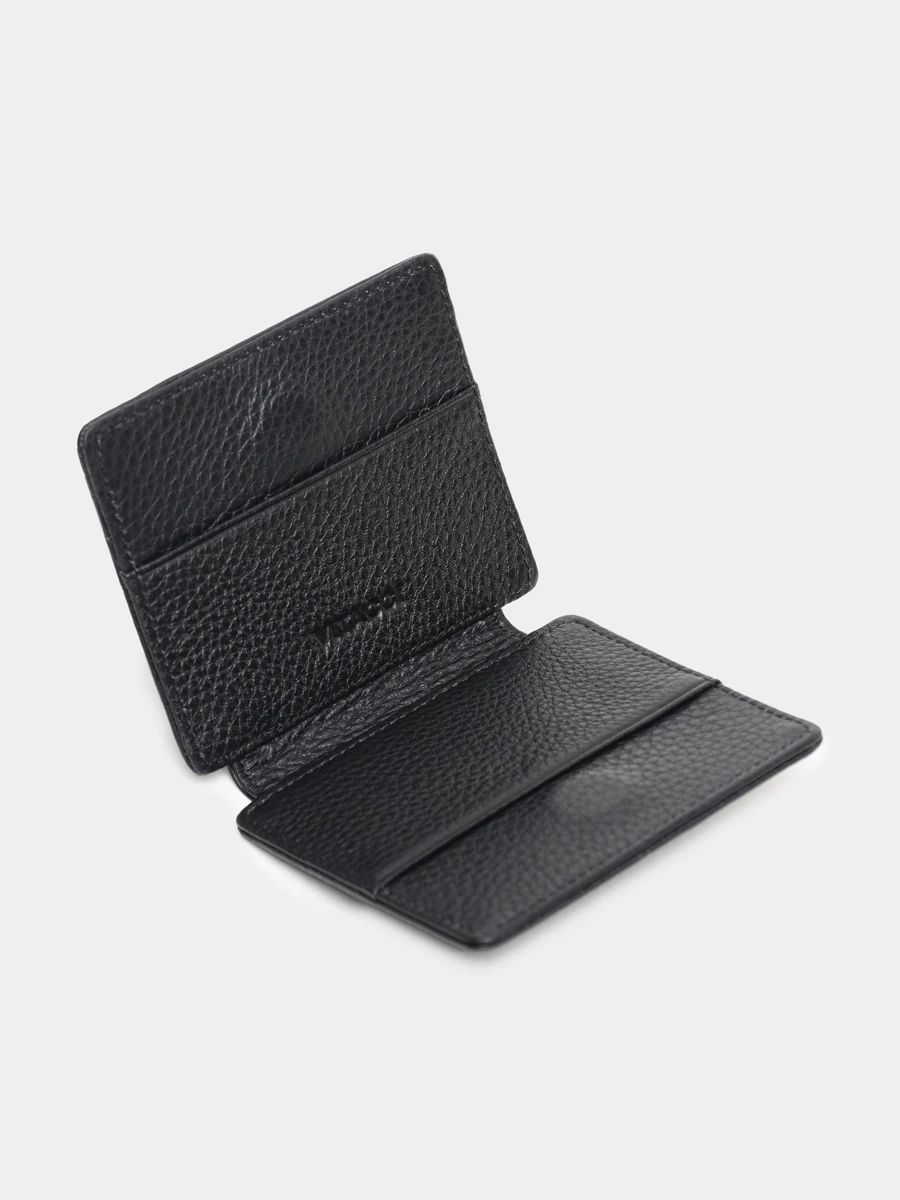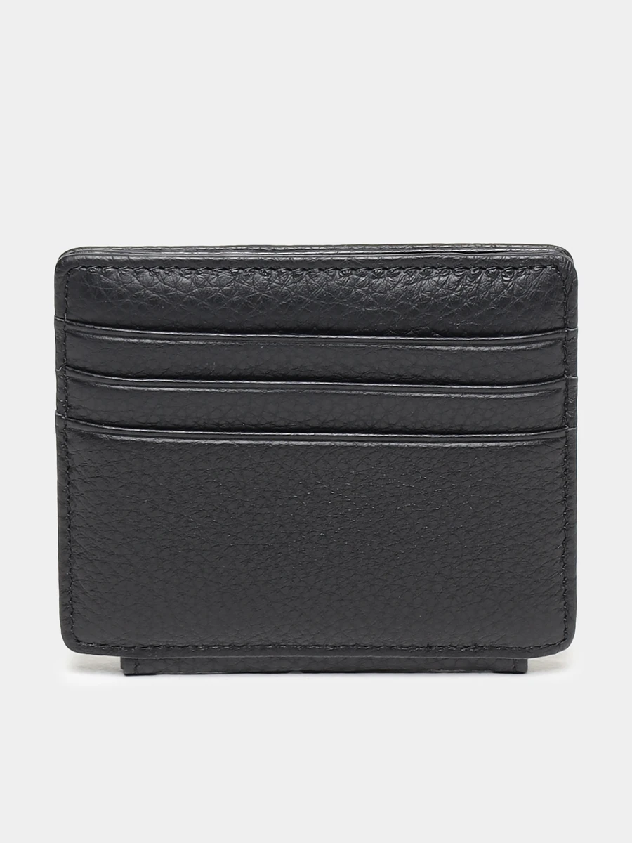 Картхолдер из натуральной кожи с зернистой фактурой. Основная застежка выполнена в виде магнита, а также имеется отделение для монет с кнопкой.