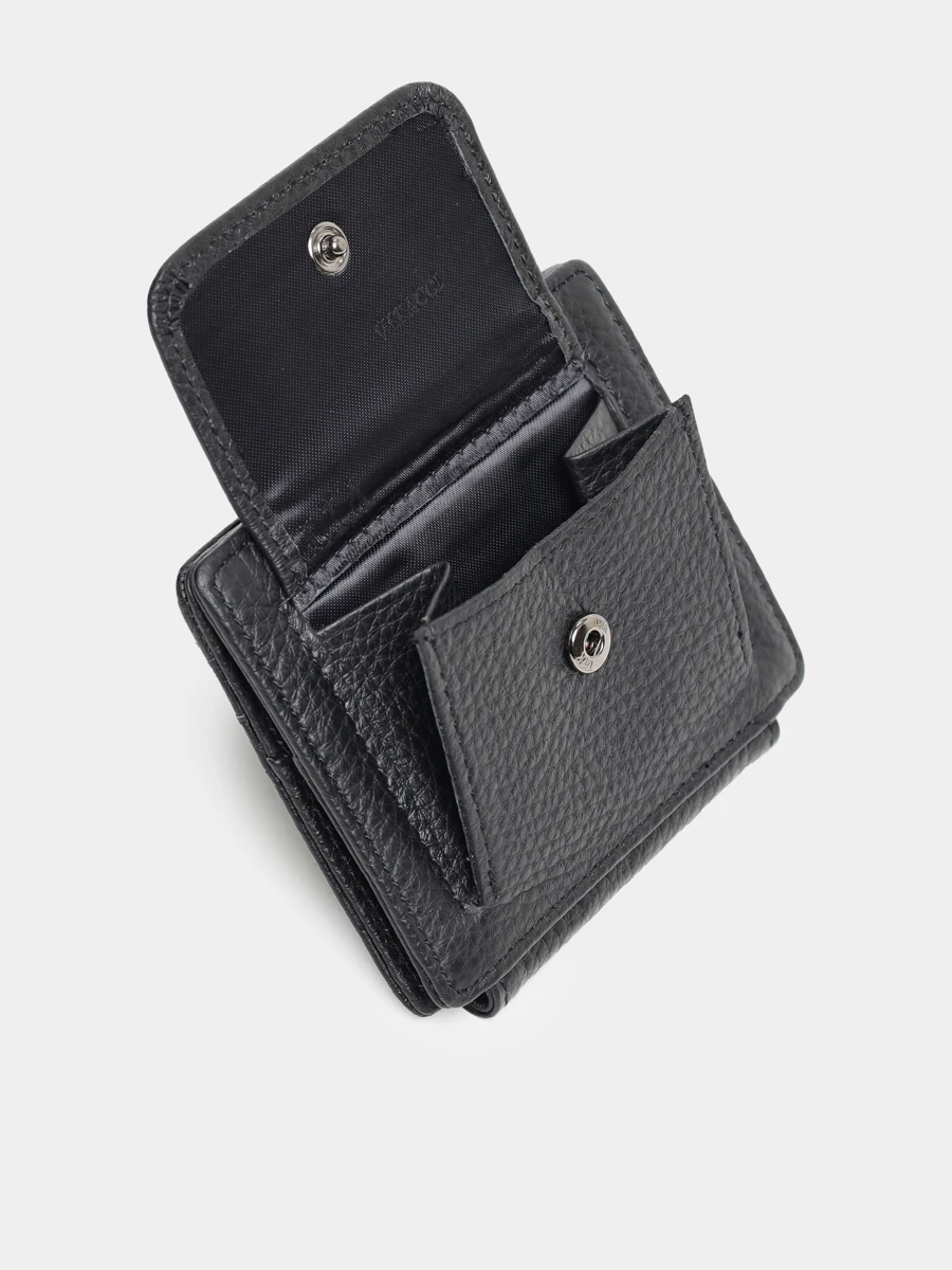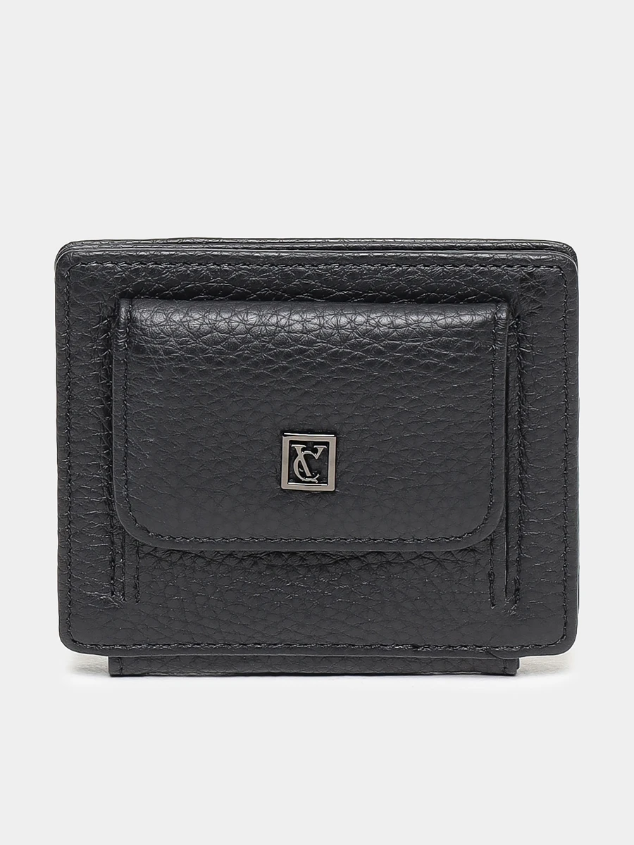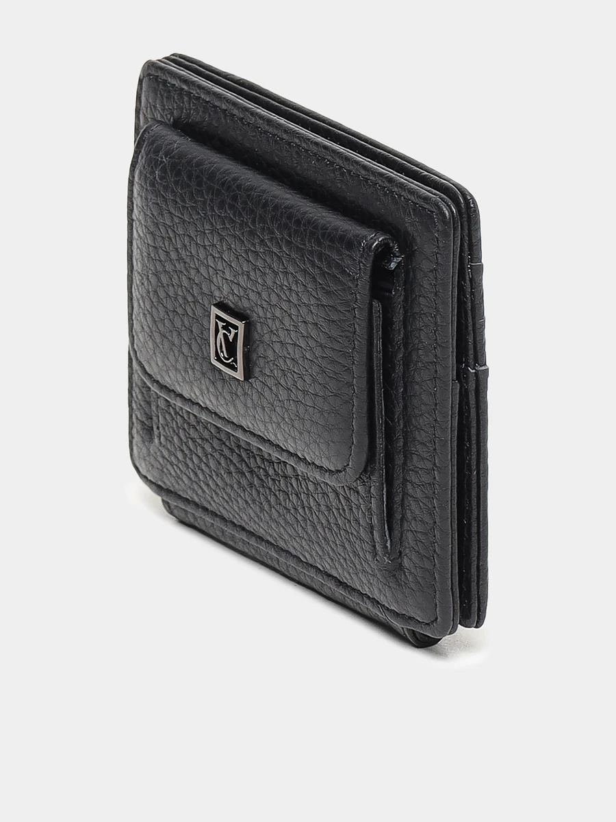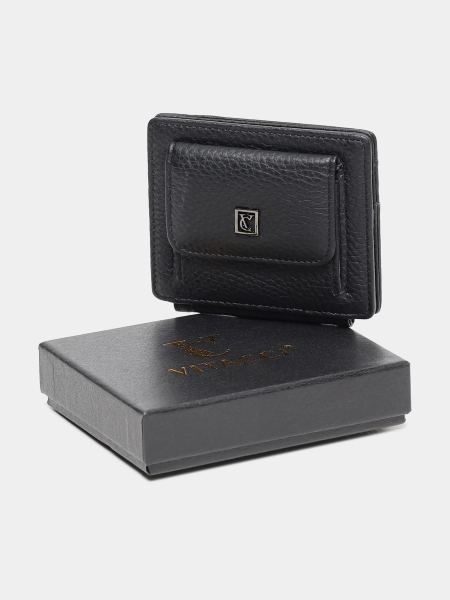 Картхолдер из натуральной кожи с зернистой фактурой. Основная застежка выполнена в виде магнита, а также имеется отделение для монет с кнопкой.