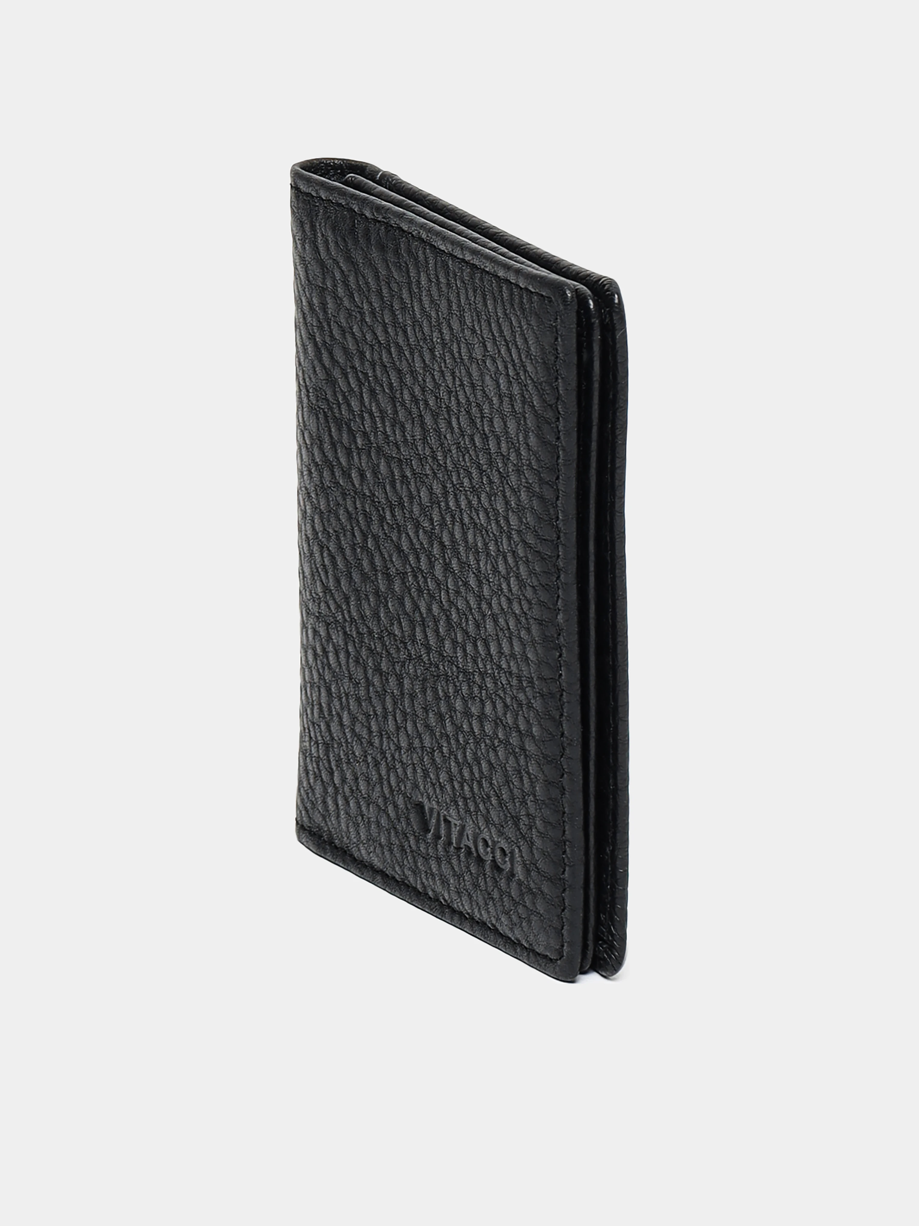 Картхолдер (или кредитница) из натуральной кожи с зернистой фактурой. Имеются отделения для пластиковых карточек в количестве 4 штук. Поставляется в брендированной коробке.