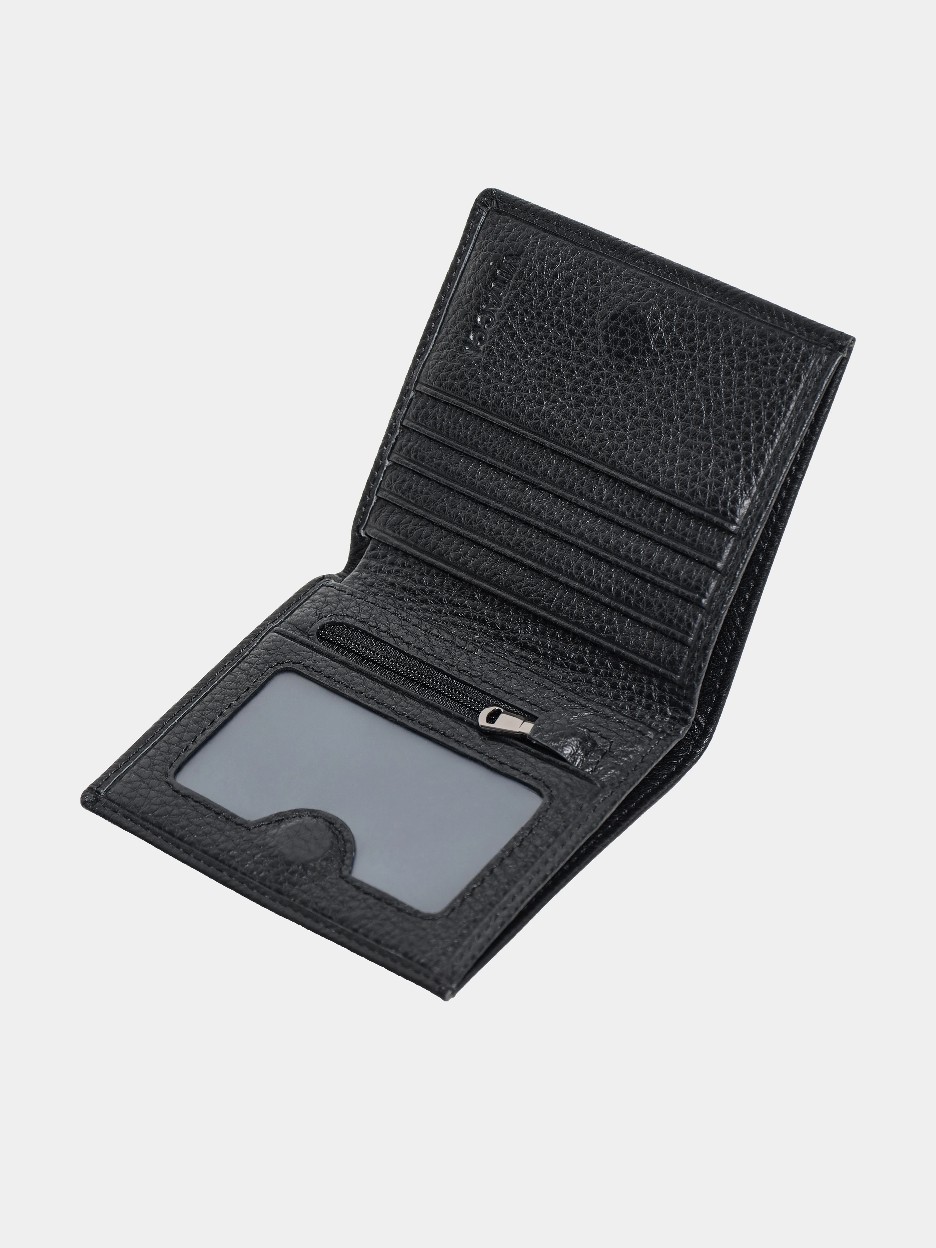 Мужской кошелек из натуральной кожи. Имеются отделения для купюр, пластиковых карточек и монет. Поставляется в брендированной коробке.