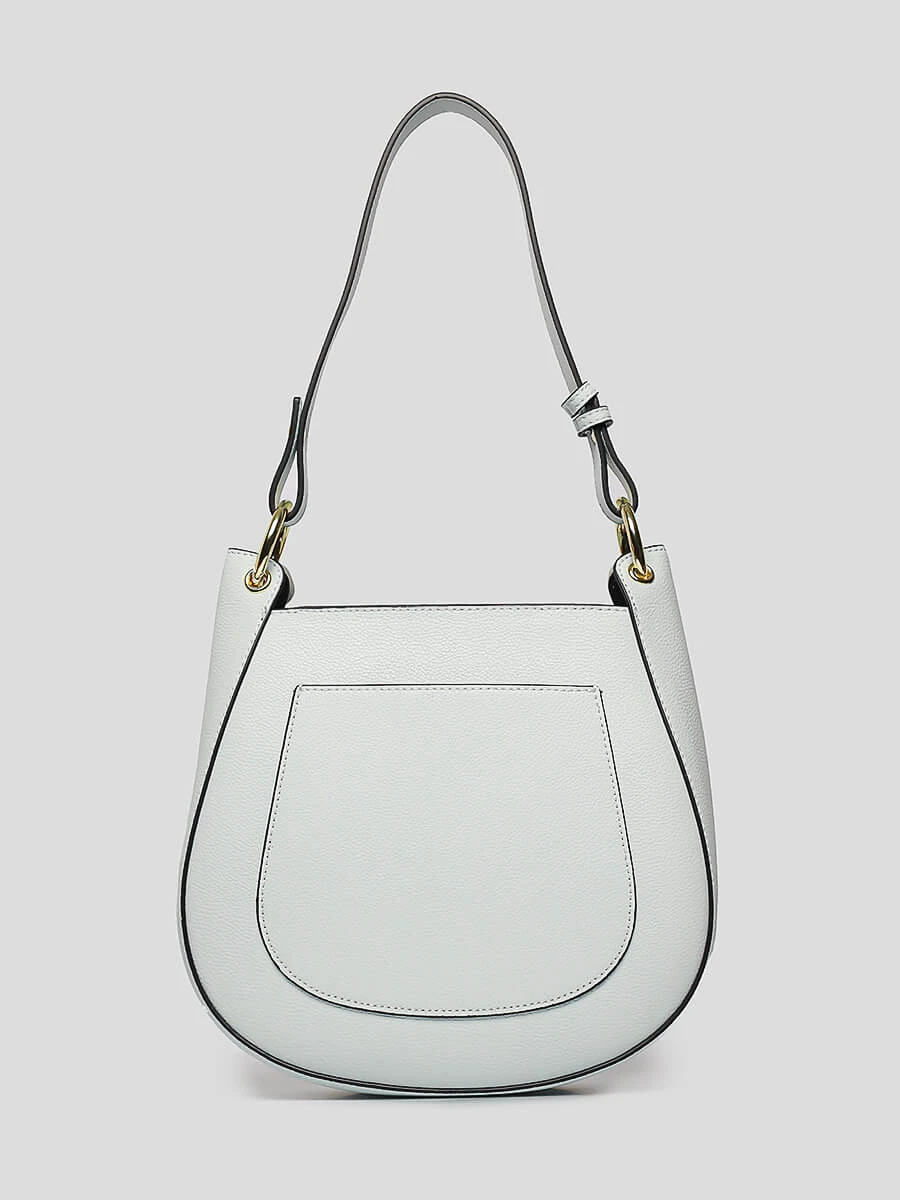 Сумка женская закрывается на молнию. Внутри один большой отдел и один кармана для документов. С внешней стороны сумки на задней стенке карман для документов.
