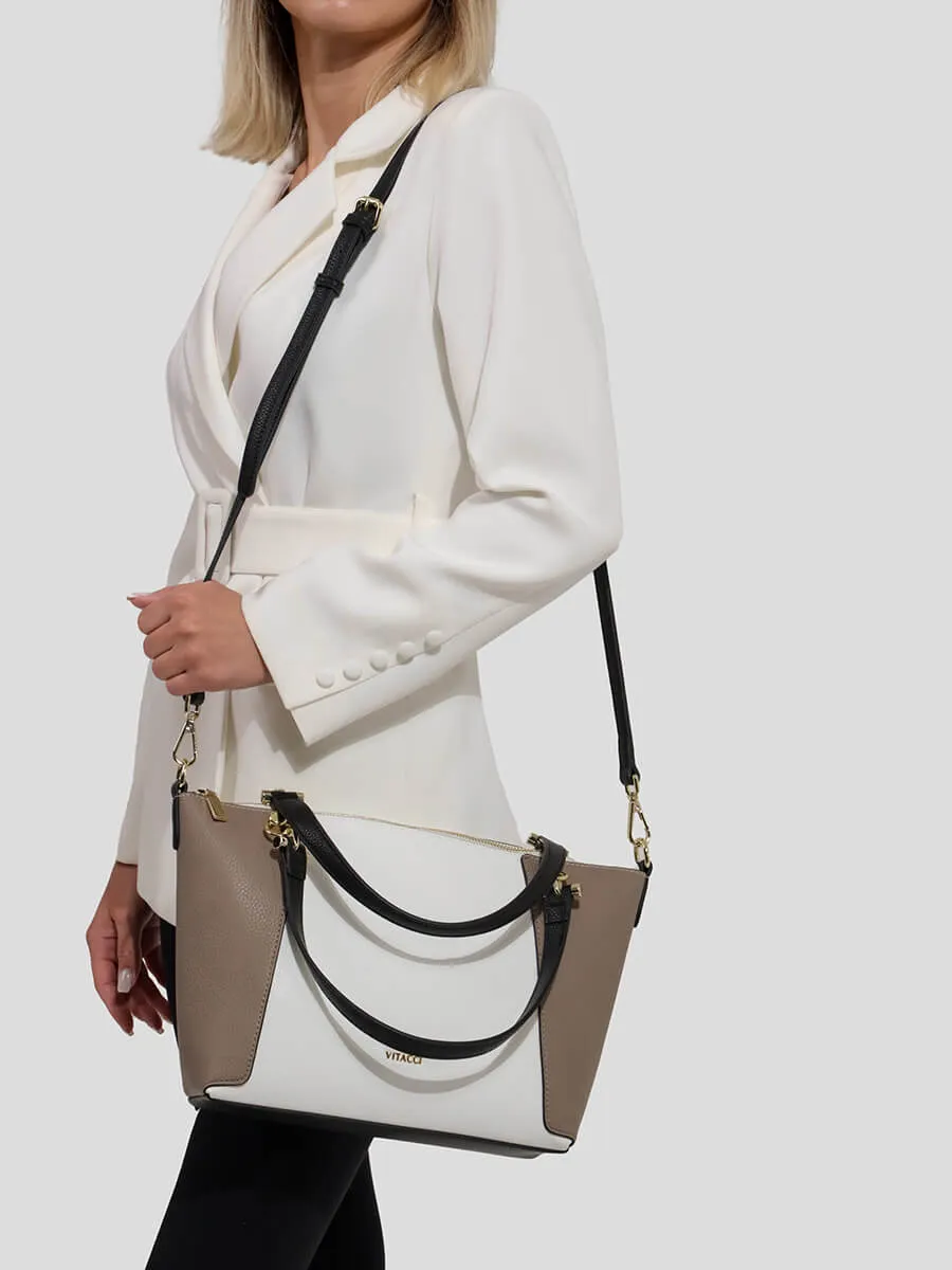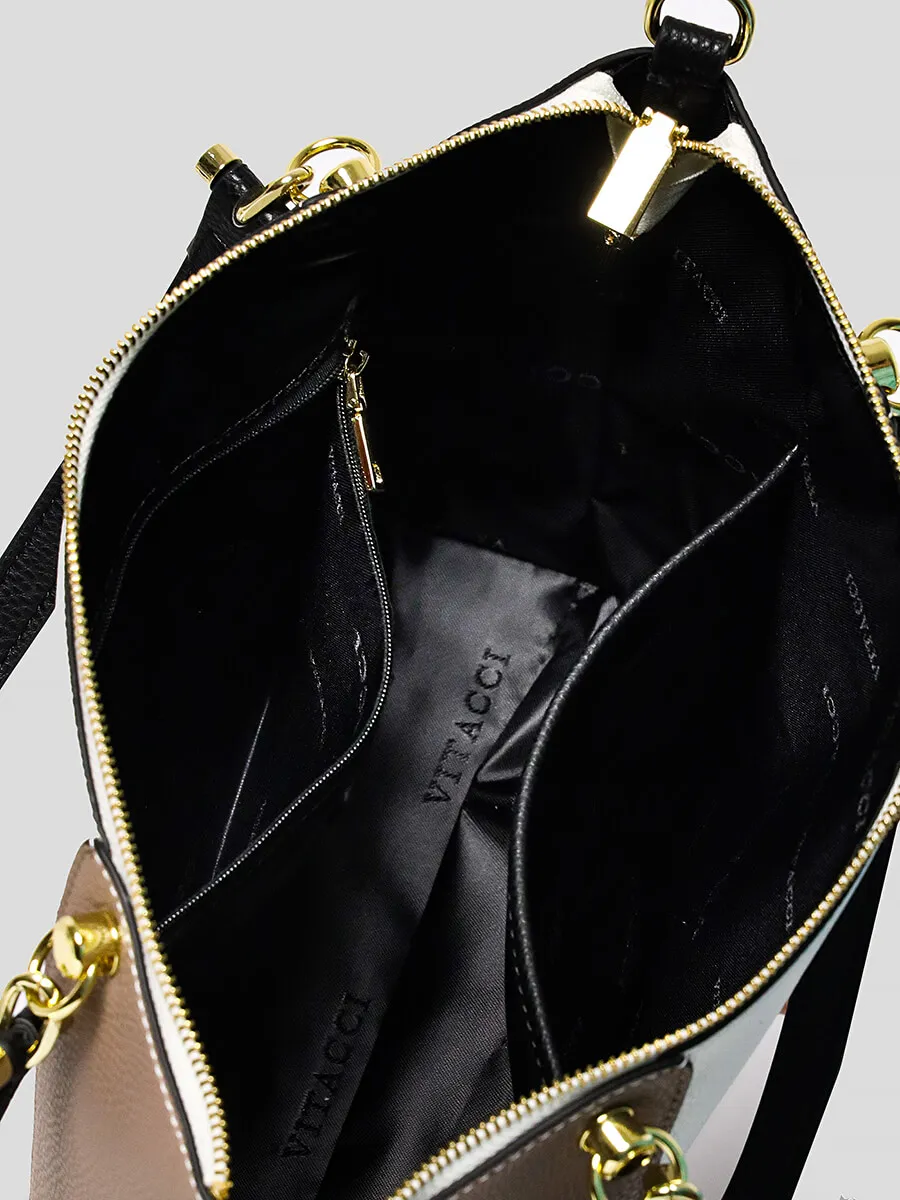Сумка женская закрывается на молнию. Внутри большой отдел и два кармана, один закрывается на молнию.