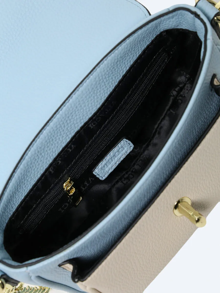 Сумка женская закрывается клапаном на декоративный замок. Внутри один отдел, один объемный карман, и два кармана для документов, один из которых на молнии.