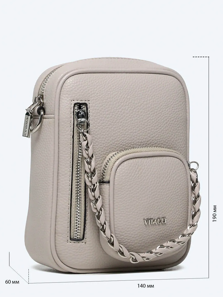 Сумка закрывается на молнию. Внутри один отдел и карман для документов.
