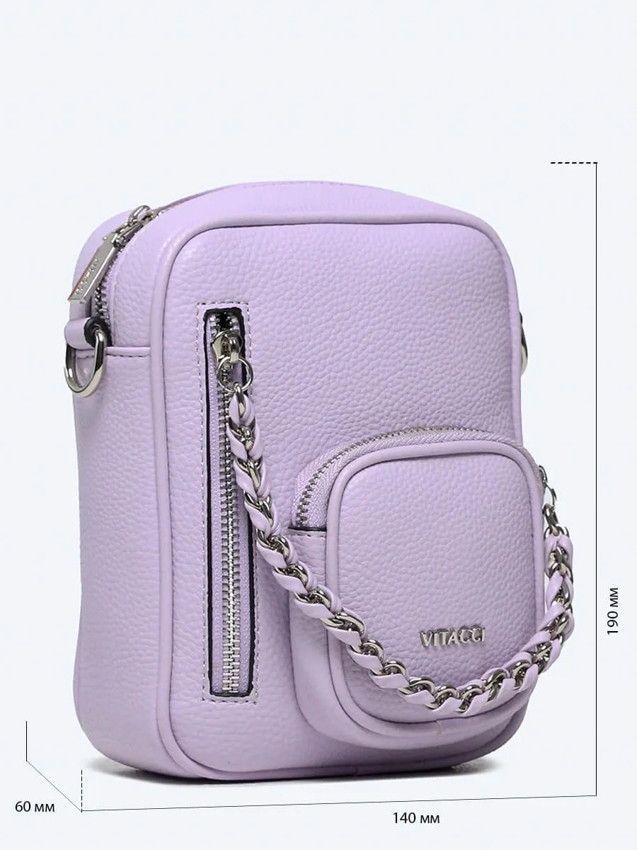 Сумка закрывается на молнию. Внутри один отдел и карман для документов.