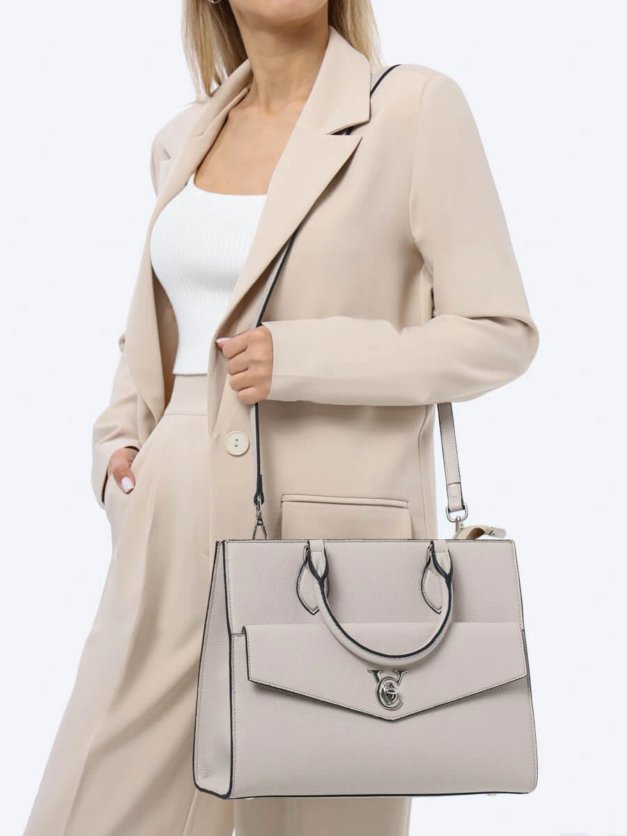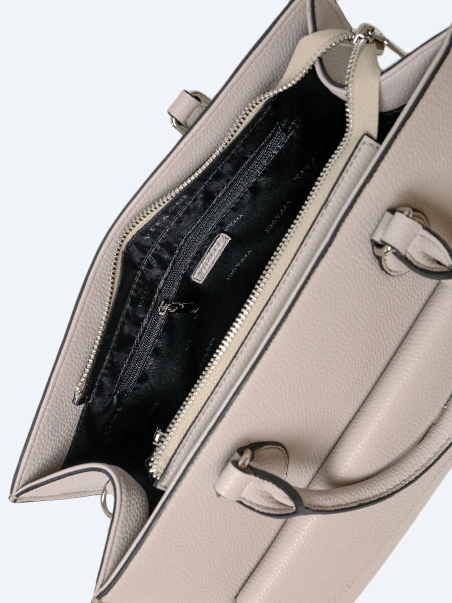 Сумка женская закрывается на молнию. Внутри два больших отдела, между которыми отсек на молнии.