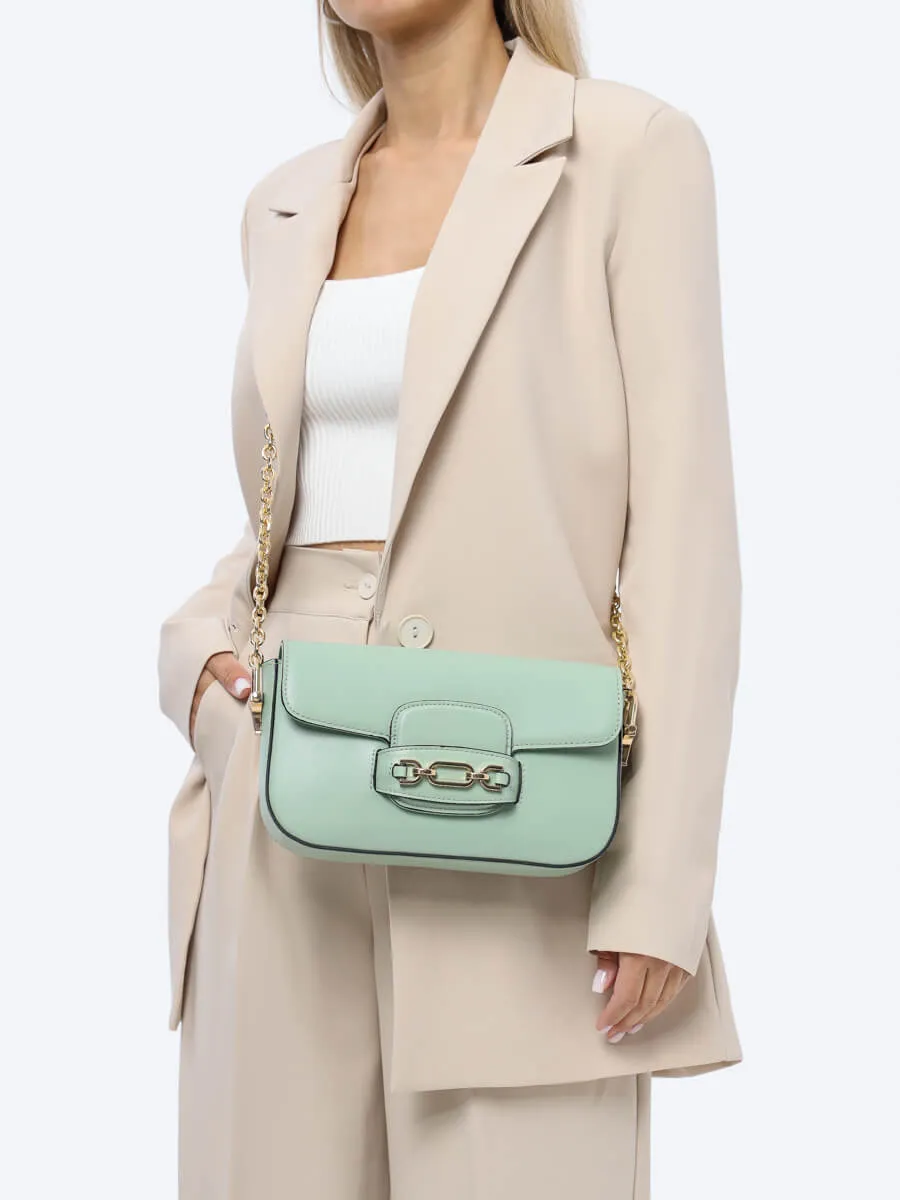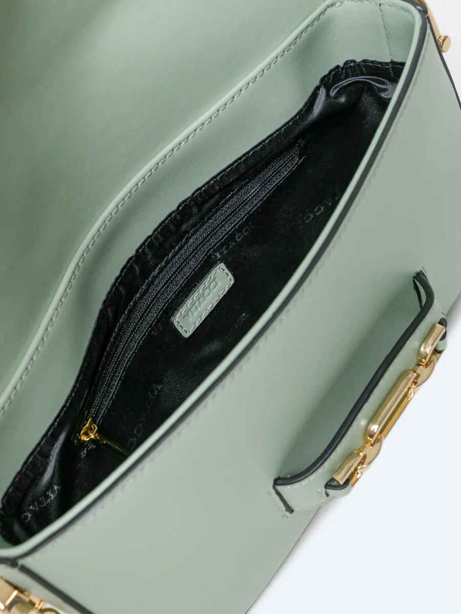 Сумка женская закрывается клапаном на магнит. Внутри один отдел и два кармана для документов, один из них закрывается на молнию.