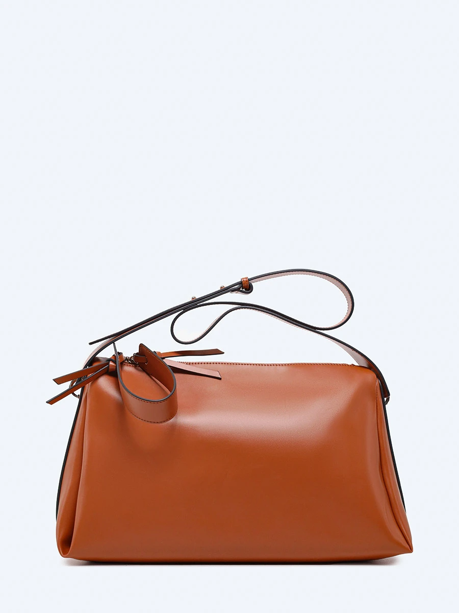 Сумка из искусственной кожи имеет одно отделение. В комплекте прилагается два съемных ремня: короткий и длинный с возможностью регулировки.