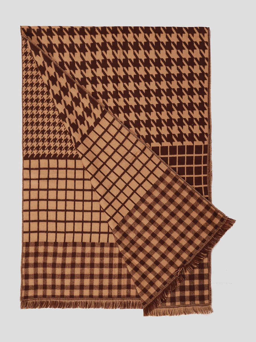 Женский палантин для прохладной осени и весны. Выполнен с клетчатым узором. Длина палантина составляет 200 см, ширина - 65 см.