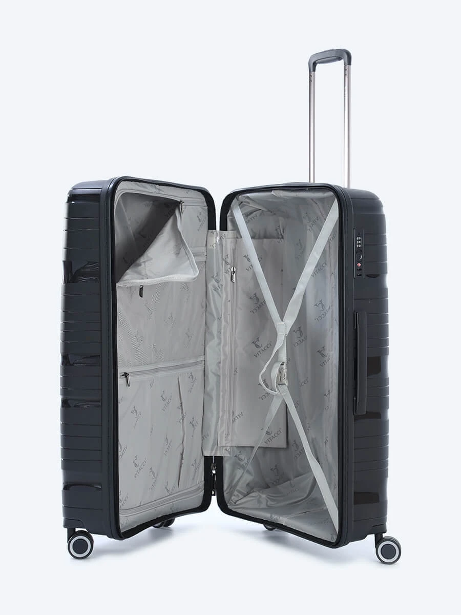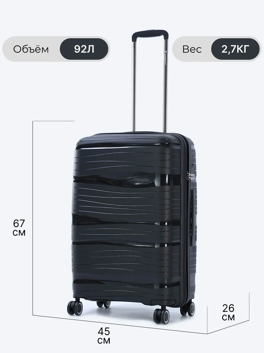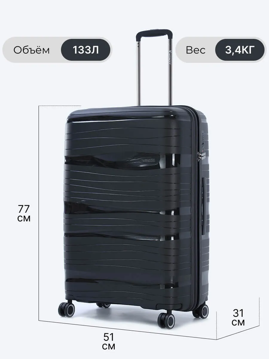 Комплект из трех чемоданов от бренда VITACCI. Изготовлен из полипропилена, оснащен замком с функцией TSA и двойными колёсами. Габариты: большой чемодан - 77,0 см х 51,0 см х 31,0 см, средний чемодан - 67,0 см х 45,0 см х 26,0 см, маленький чемодан - 56,0 см х 39,0 см х 24,0 см. Литраж: большой чемодан - 133,0 л, средний чемодан - 92,0 л, маленький чемодан - 60,0 л. Вес: большой чемодан - 3,4 кг, средний чемодан - 2,7 кг, маленький чемодан - 2,4 кг.